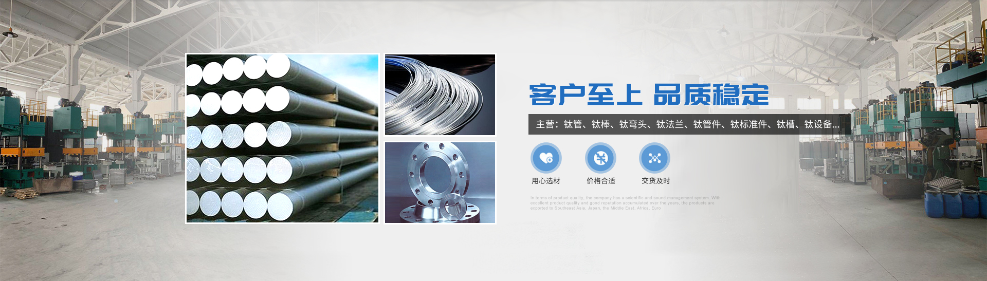 本公司的主營產(chǎn)品鈦制品有,鈦管,鈦棒,鈦彎頭,鈦法蘭,鈦管件,鈦標準件,鈦槽,鈦設備,鈦沖壓彎頭等。所生產(chǎn)各種規(guī)格的鈦制品主要運用于化工、電鍍、石油、電子、環(huán)保、海洋等領(lǐng)域"以質(zhì)量求生存,靠服務求發(fā)展“為宗旨,客戶的滿意是我們的追求,歡迎各界用戶來函來電,傳真,洽談貿(mào)易。
